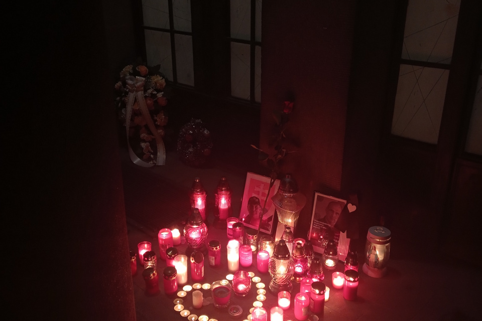 Na Okresnom riaditeľstve policajného zboru na ulici Andreja Žarnova v Trnave sú zapálené sviečky v súvislosti s úmrtím Milana Lučanského.