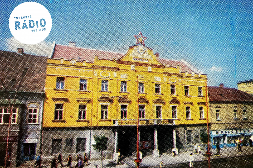 Späť do minulosti: Pohľad na trnavskú radnicu ku koncu 70. rokov. Pamätníci si spomenú na širokú cestu na mieste dnešnej pešej zóny, po ktorej premávala mestská autobusová doprava. Nechýba legendárne holičstvo “na rohu”.