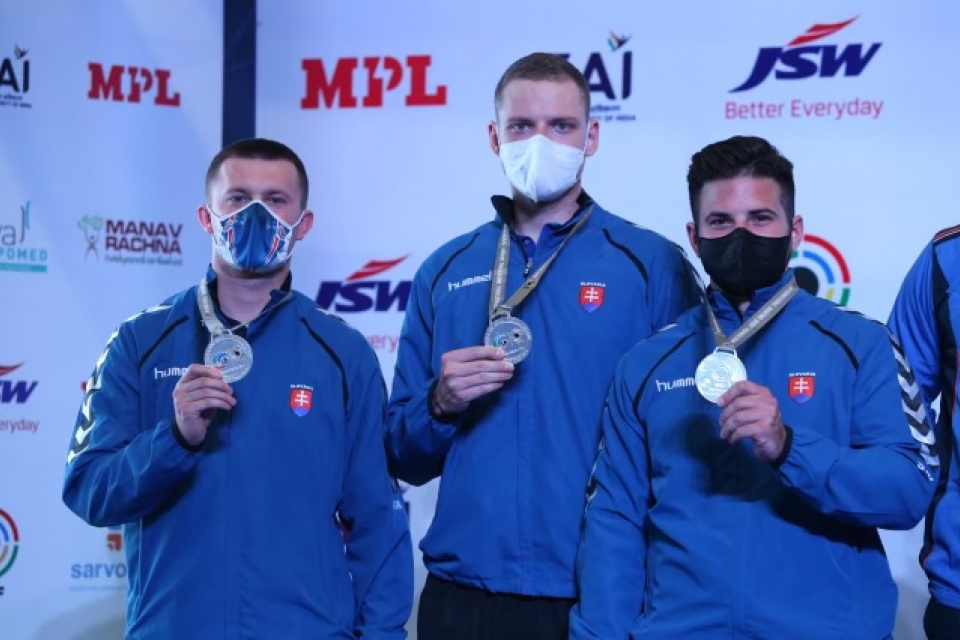 V záverečnej tímovej súťaži trapistov obsadili naši strelci Michal Slamka, Adrián Drobný a Filip Marinov na svetovom pohári v Indii druhé miesto a odnášajú si tak strieborné medaily.