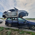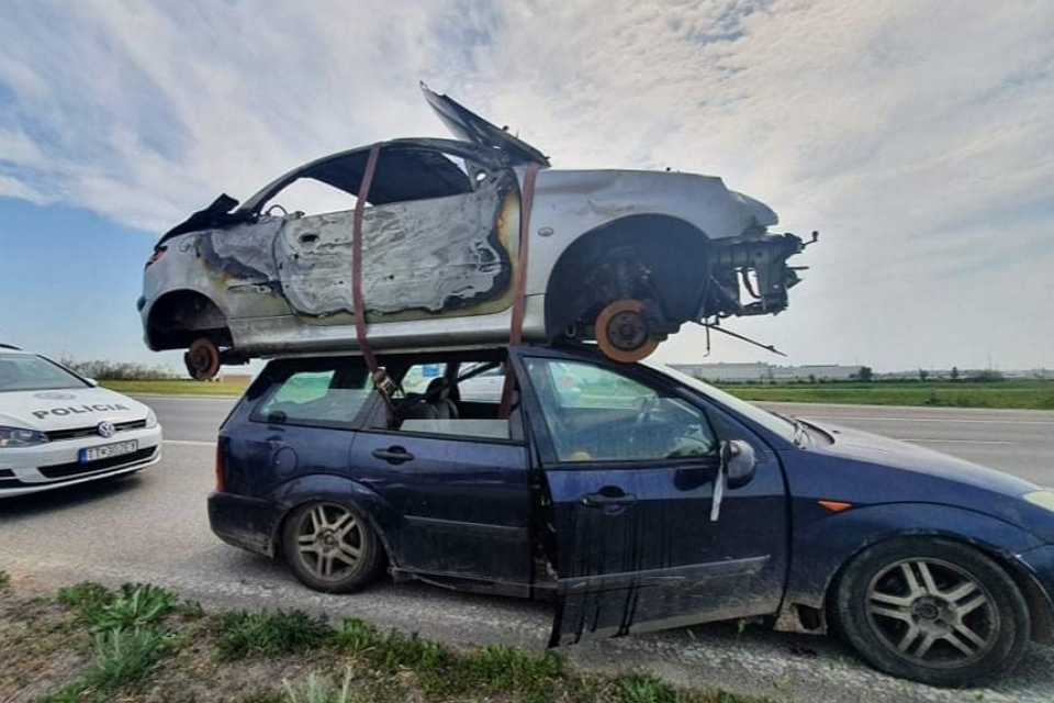 Policajti dnes na trnavskom juhovýchodnom obchvate zastavili vodiča, ktorý na streche auta prevážal vrak ďalšieho vozidla. Tvorila sa za ním kolóna vozidiel. Pri kontrole policajti zistili, že vrak mala posádka odkúpiť od majiteľa a takto ho chceli previezť a odovzdať do zberných surovín.
