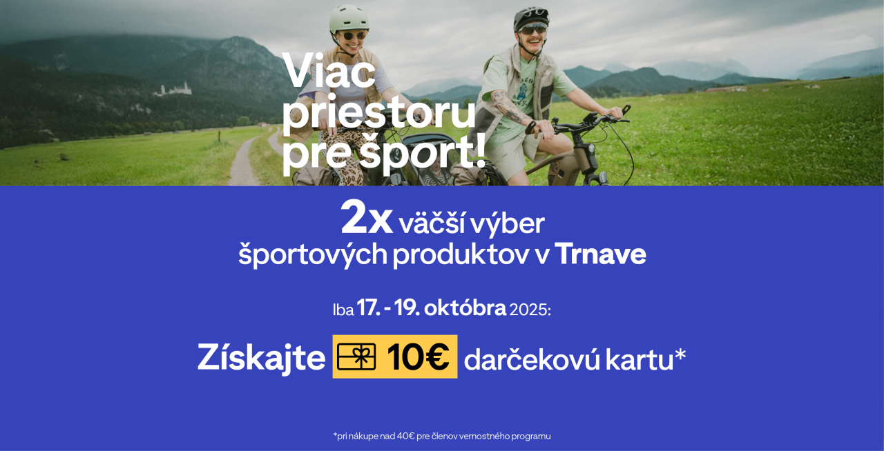 Teraz tu nájdete vybavenie, obuv, príslušenstvo aj športové oblečenie pre viac ako 55 športov – všetko na jednom mieste. Či už sa venujete cyklistike, futbalu, turistike, alebo fitness, kompletné vybavenie je pripravené.