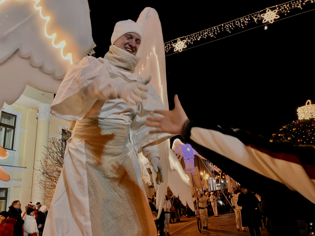 Zastihli sme aj nosiča konštrukcie Štepána z anjelského alegorického sprievodu. "Zo začiatku to bolo fajn, mal som dobrého spolu-nosiča, potom tam bolo ale dosť ľudí, takže to už bolo ťažšie, ale zvládli sme to," povedal pre Trnavské rádio Štepán z alegorického sprievodu.