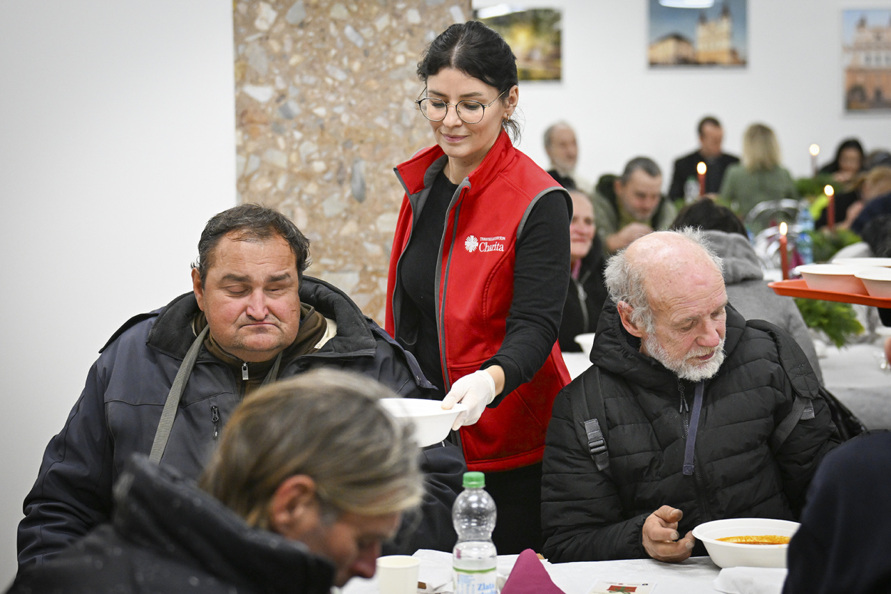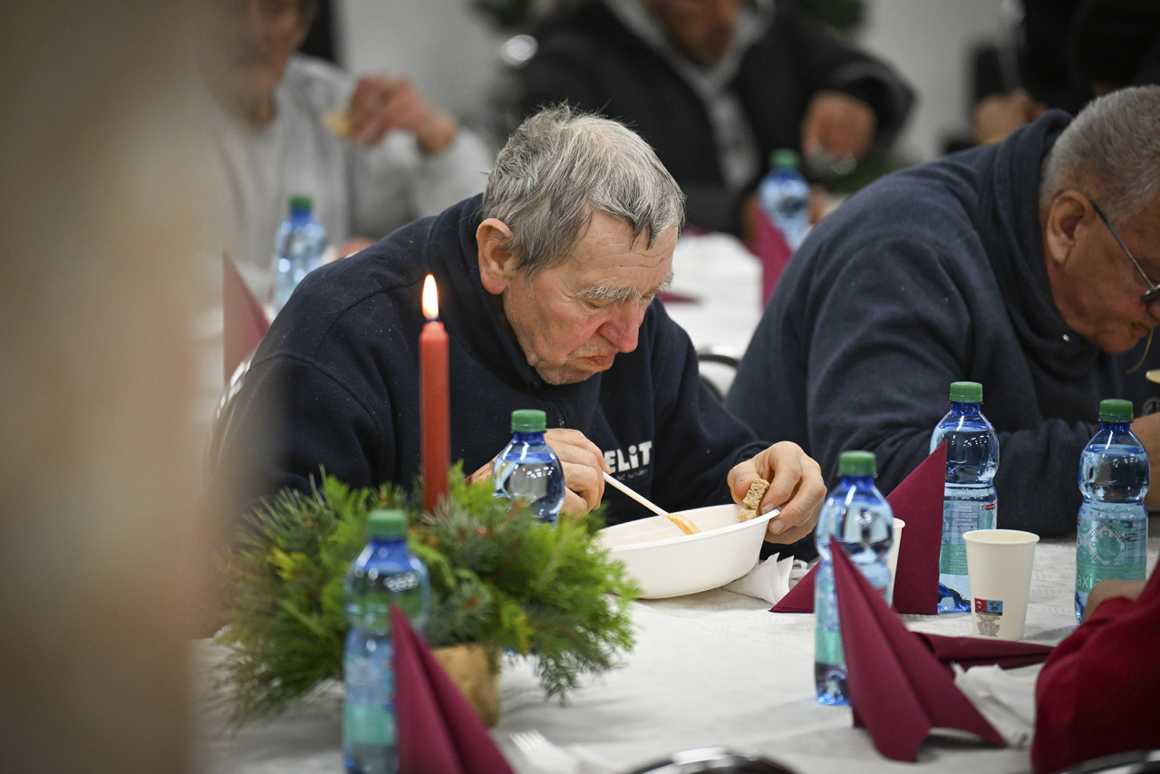 Hostia si vychutnali teplý sviatočný obed. Na stole nechýbala kapustnica, ryba so zemiakovým šalátom, oblátky s medom ani sladké a slané pohostenie. Zástupca riaditeľa charity Igor Strýček vyzdvihuje, že okrem pohostenia je hlavným zámerom podujatia ponúknuť hosťom v ťažkej situácií ľudskú prítomnosť a prijatie: „Čo je dôležité povedať je, že tí ľudia sa tu neprišli len najesť. Oni tu zotrvajú, aj keď je stôl prázdny. Zostávajú tu v príjemnom spoločenstve. Toto je hlavná myšlienka,“ dodáva.