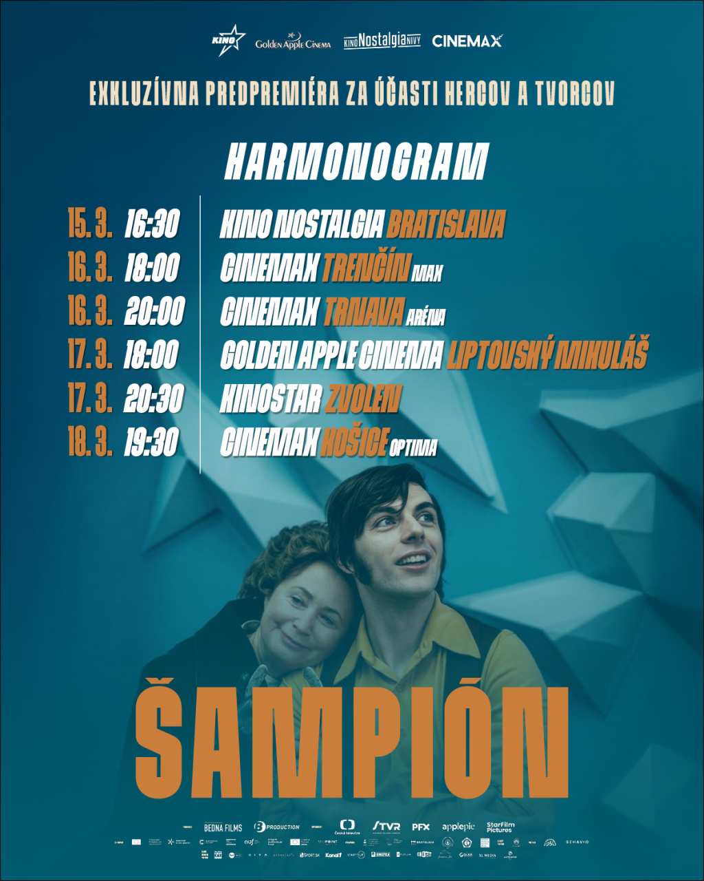 Film Šampión sa vydáva na cestu naprieč Slovenskom. Dnes si ho budú môcť diváci pozrieť v Trnave. Na projekciu v Cinemaxe v City Aerene prídu aj herci a tvorcovia. Premietania budú sprevádzať stretnutia s publikom.