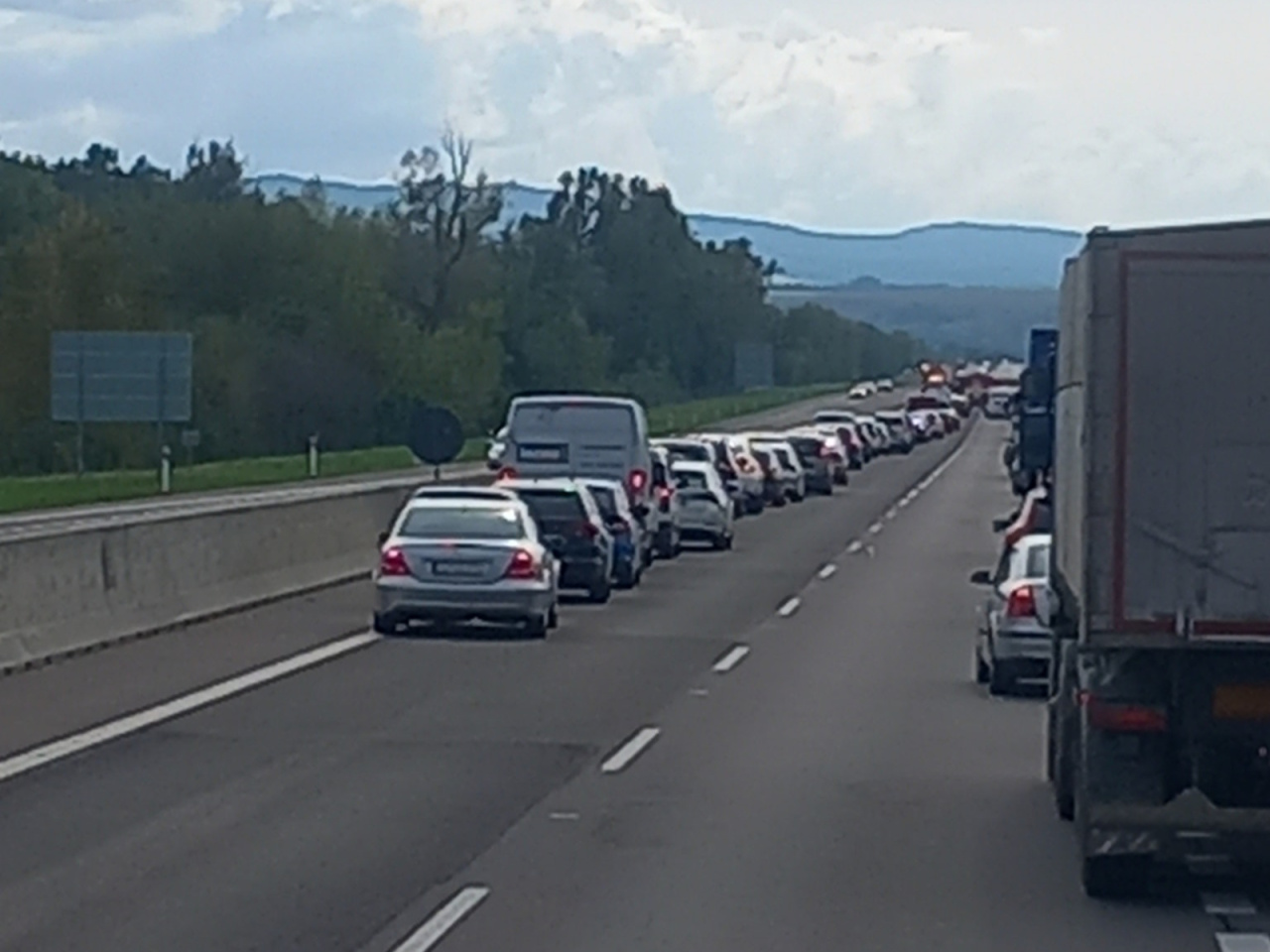 Na diaľnici je nehoda. Opatrne pri odpočívadle Hrádok smerom do Piešťan. Ide to tam pomaly.