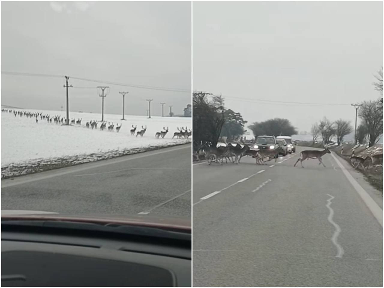 Daniele migrujú. Na Záhorí včera skrížili cestu medzi Rohovom a Častkovom. Tvorili sa kolóny. Cez cestu zatiaľ cválali asi až stovky zvierat, tvoriť mohli kolónu možno až v kilometroch.